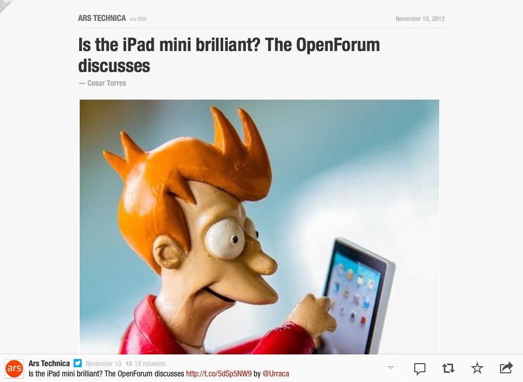 RT @arstechnica: Is the iPad mini brilliant? The OpenForum discusses http://flpbd.it/bHRTi by @Urraca http://flpbd.it/TGT6t